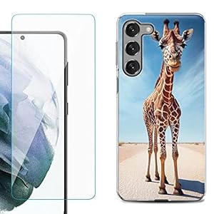 One Tough shield Phone Case Compatible with Samsung Galaxy S23+ S23 Plus, with Tempered Glass Screen Protector – Giraffe