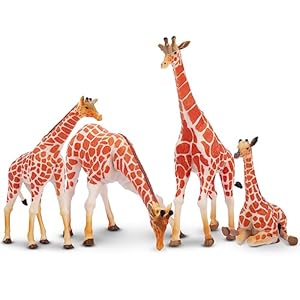 Toymany 4PCS Realistic Giraffe Figurines with Giraffe Cub, 2-7″ Plastic Jungle Animals Figures Family Playset Includes Baby, Educational Toy Cake Toppers Christmas Birthday Gift for Kids Toddlers