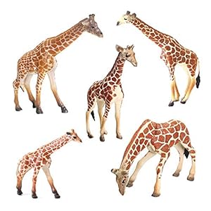 HERSMEMOR 5PCS 5-7″ Realistic Plastic Giraffe Figurines Set, Detailed Textures Wild Animal Toy Figures, Christmas Birthday Gift for Kids