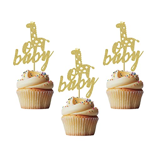24 Pcs Oh Baby Cupcake Toppers Animal Giraffe Gender Reveal Party Baby Shower Birthday Party Cake Decoration Dessert Insert MGPFERD