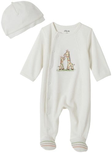 Little Me Giraffe Footie with Hat Ivory Little Me Neutral Giraffe footed coverall with front snap closure. 100% cotton machine washable. Solid Ivory ribbed coverall with giraffe art applique on chest and foot treatment with a matching hat to complete the look. Full inseam snap closure allows for easy changing. Size Length Weight Preemie to 18″ (46 cm) to 5 lbs. Newborn to 21″ (53 cm) to 8 lbs. 3 months to 24″ (61 cm) to 12 lbs. 6 months 24″ to 27″ (61 to 68 cm) 12 to 16 lbs. 9 months 27″ to 29″ (68 to 74 cm) 16 to 18 lbs. 12 months 29″ to 31″ (74 to 79 cm) 18 to 23 lbs.