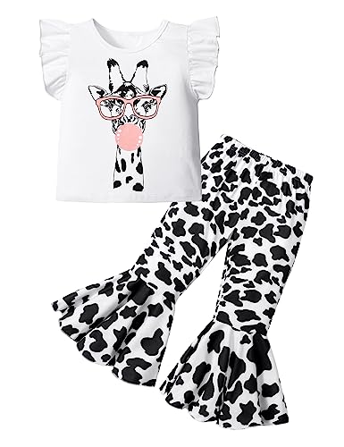 Tomolant Toddler Girl Clothes 18 Months Girl Clothes 2t Girl Clothes 18-24 Months Girl Clothing Flying Sleeve Giraffe Print Top + Bell Bottom Pants