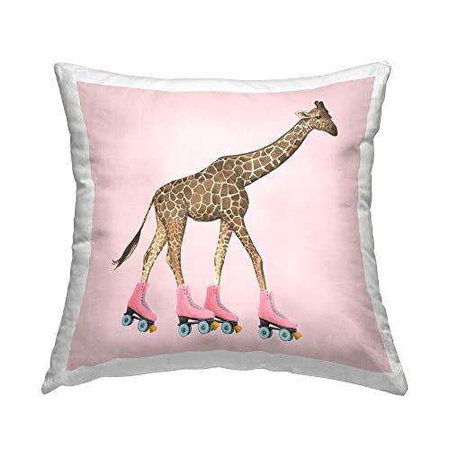 Stupell Industries Funny Giraffe Wearing Roller Skates Over Pink Design by Grace Popp Pillow, 18 x 18